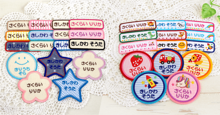 入園・入学準備に使われるお名前ワッペン。通園バッグや靴袋・スモック、お昼寝布団などの名入れにお使いいただけます。