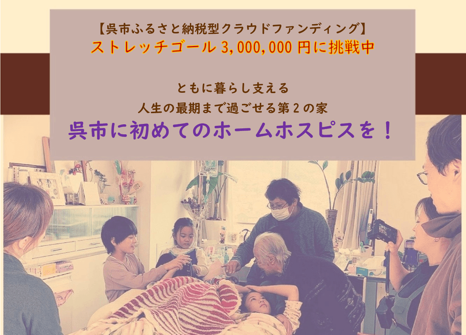 広島県呉市初の「ホームホスピス」設立に向けた クラウドファンディングが開始12日で目標金額150万円を達成! ~ストレッチゴール300万円に挑戦中~