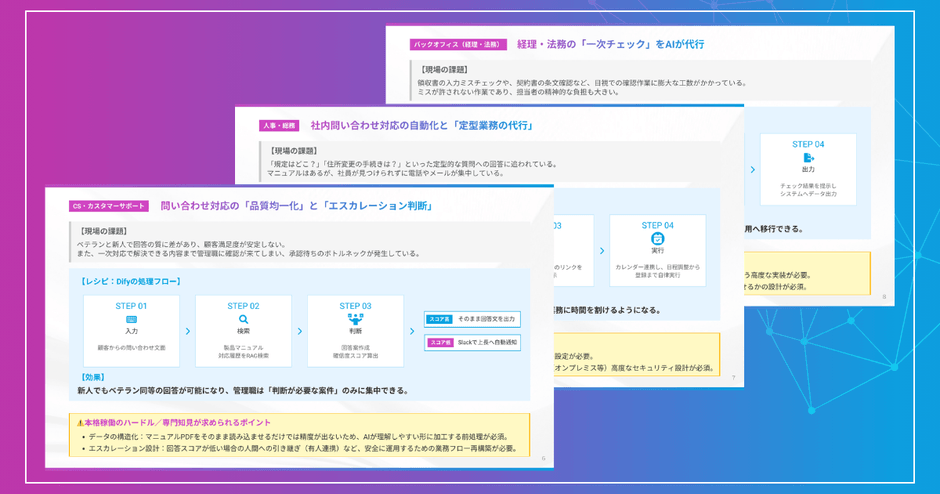 - 弊社担当者よりメールにて「Dify 部署別・実践レシピ集」をご案内させていただきます。