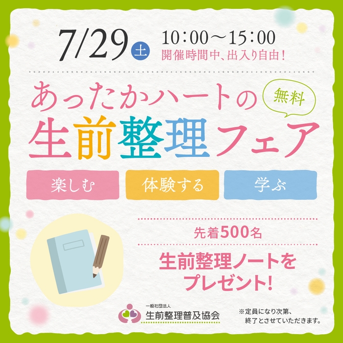 全国から専門家が集まる日本最大級の生前整理イベント 「体験型あったかハートの生前整理フェア in 名古屋」を7/29開催 シンママ向け“万が一ノート”体験会も同時開催
