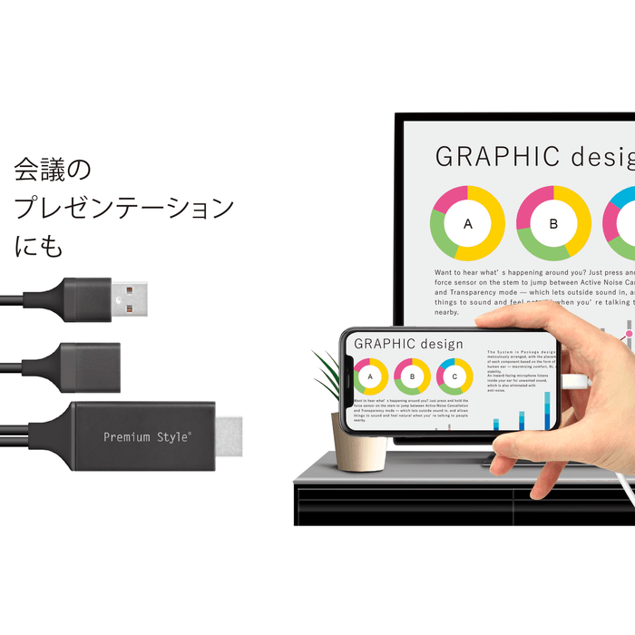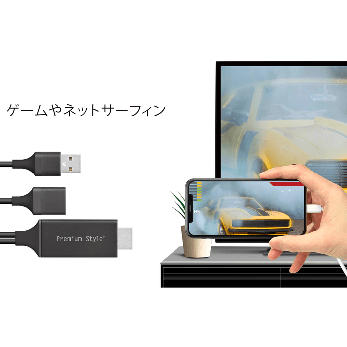 デバイスとディスプレイを繋ぐだけの簡単接続設計のHDMIミラーリングケーブル