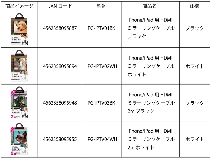 携帯電話やデジタルオーディオ端末等のアクセサリーの商品を企画・製造・販売を手掛ける株式会社PGA(本社:横浜市都筑区、代表取締役:黒木 光)は、このたびケーブル長が2mとご家庭のリビングなどでも取り回ししやすい長さを新たにラインナップに加えて iPhone/iPad用 HDMIミラーリングケーブルを2021年2月7日2021年12月末より発売販売を開始いたしました。