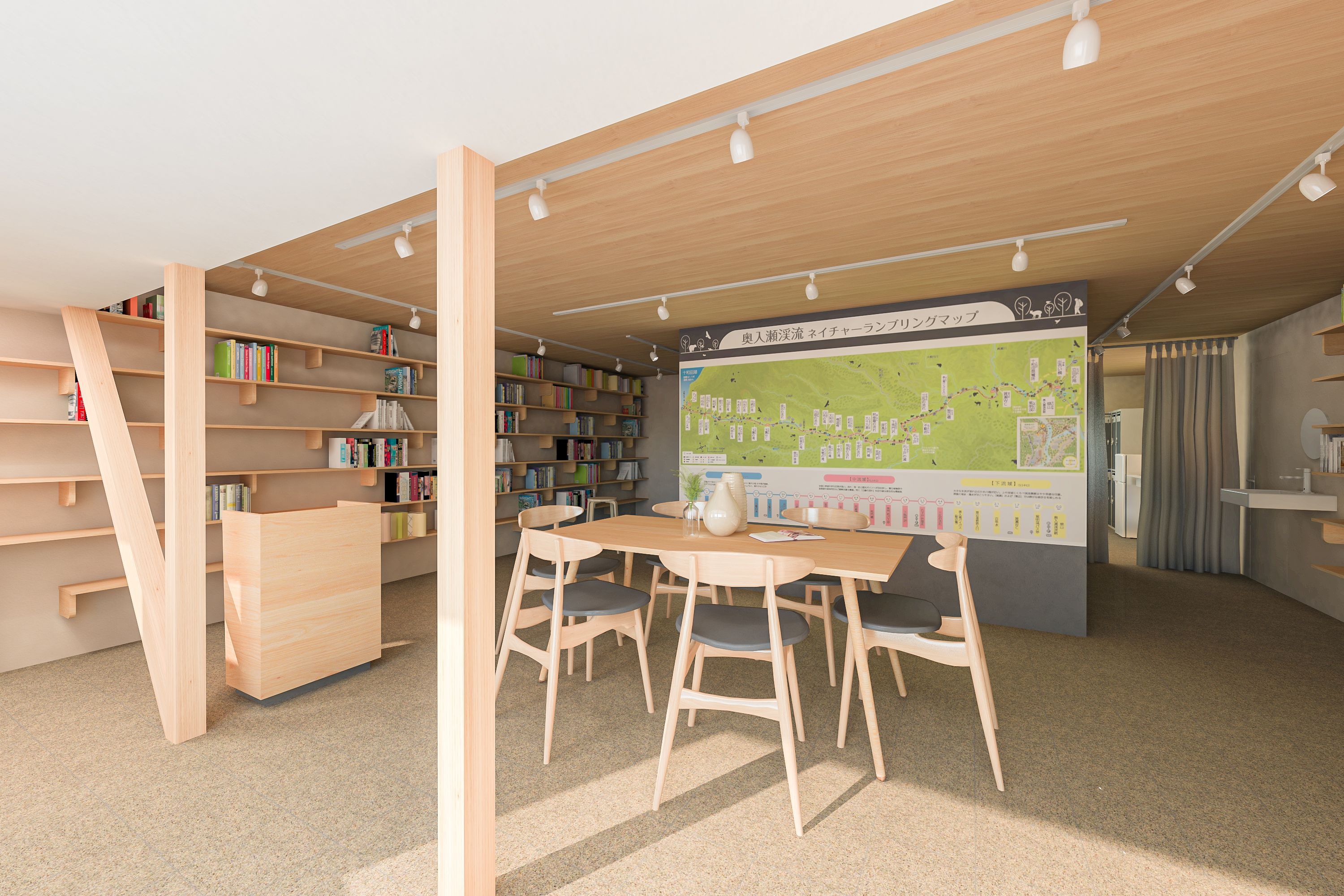 生態系、植物、地質、文化などを扱うミニライブラリーを常設し、奥入瀬の自然をきっかけに、地元の方々、国内外のゲストが集う、交流の場、学びの場として運用していきます。