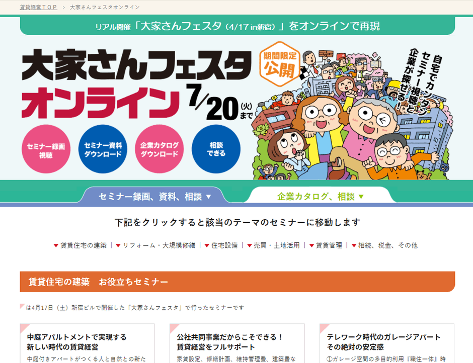 オンライン版 大家向け賃貸経営イベント 「大家さんフェスタ オンライン」 2021年4月26日(月)~7月20日(火)公開!