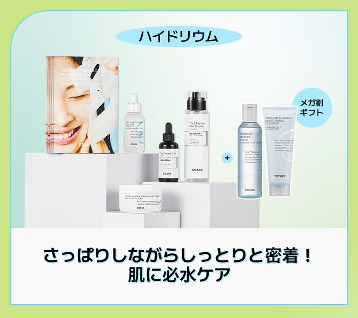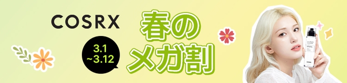 韓国スキンケアブランド「COSRX(コスアールエックス)」は2024年03月01日(金)〜 03月12日(火)までインターネット総合ショッピングモール「Qoo10」が開催するBIGセール「メガ割」に参加いたします。メガ割期間中には、肌荒れに合わせて選べる3種類の「肌悩み直撃セット」を発売いたします。さらに、幅広いコンテンツで大活躍中のインフルエンサー、エミリンさんとのコラボセットもご用意しており、お得にCOSRXの製品をお買い求めいただける機会ですので、是非お見逃しなく!
