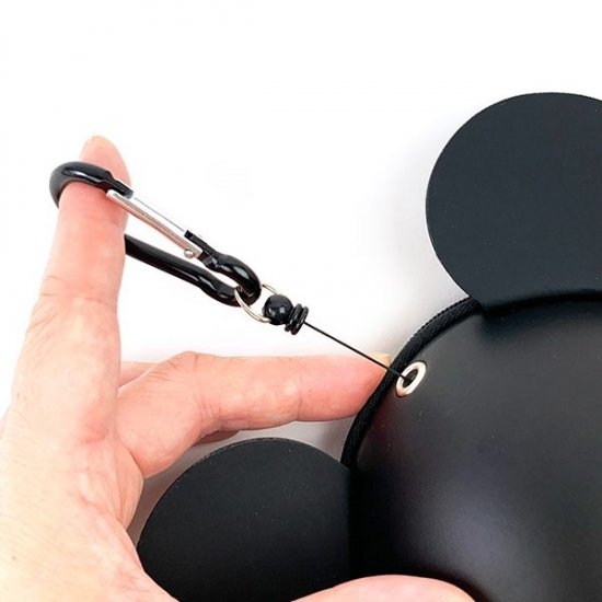 こちらもカラビナ付きで簡単取り付けです。さきほどのキー&コインケースと違う点としては、カラビナ自体にリールが付いているのでパスケースを伸ばしてそのままピッと改札を通れます♪