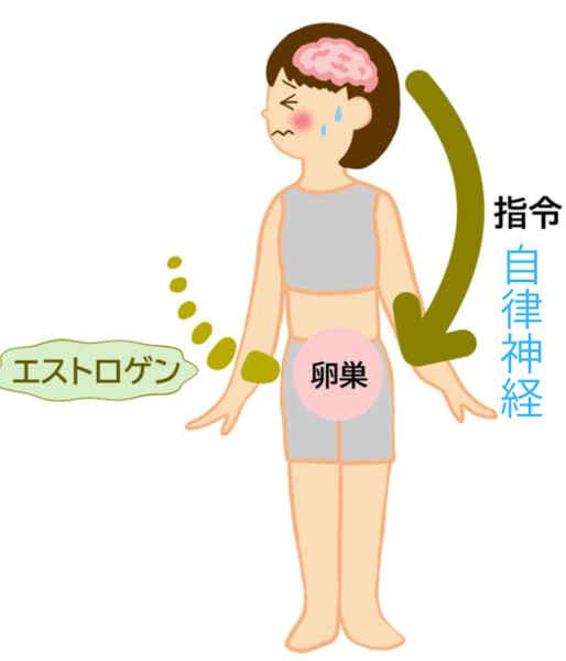 このように卵巣機能が低下する中、脳はエストロゲンを増やそうと指令をつづけ、その伝達役である自律神経が疲れてくる。つまり自律神経が大きな影響を与えているのです。