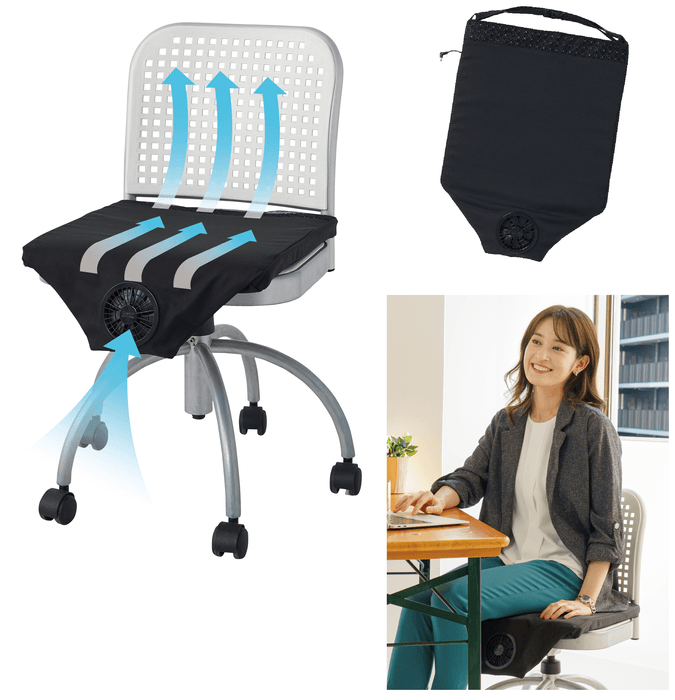 ・空調服®と同じファンを搭載し、クッション内に風を流します。