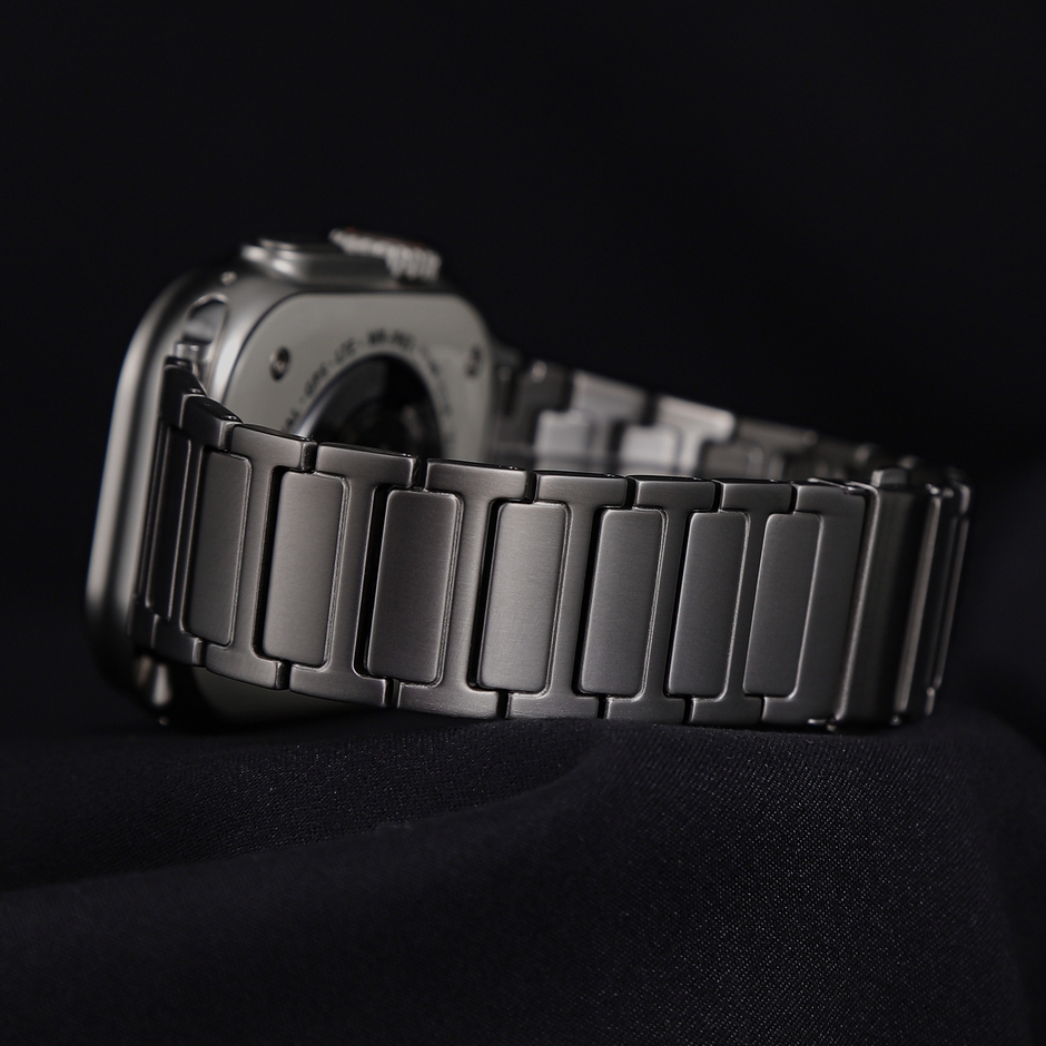 アップルウォッチに「もっとしっかり感がほしい」という声や、ステンレス製メタルベルトの“重さ”、そしてチタンの「価格」や「小傷のつきやすさ」が気になるという声が多くのユーザーから寄せられていました。そこで私たちは、すべての悩みを解決する、DLCコーティング付きチタンベルトを開発しました。
