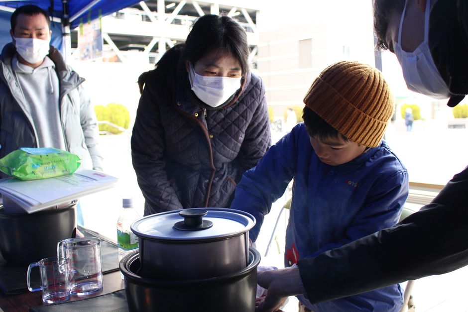 ▼「魔法のかまどごはん」による炊飯試食(3月8日)