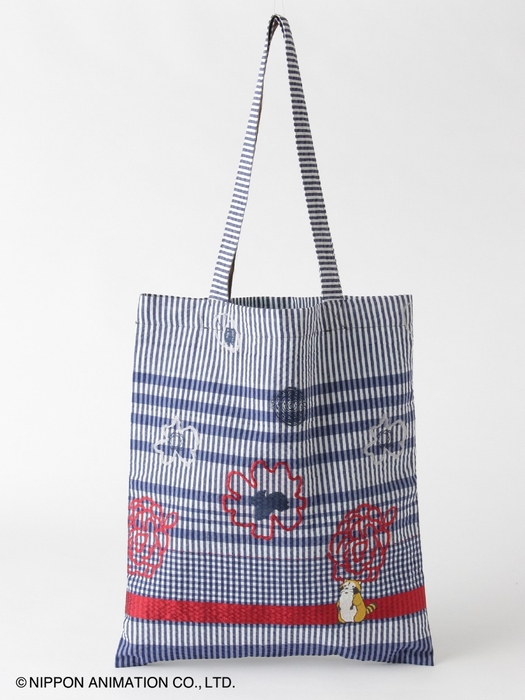 SUPER HAKKAアーカイブのアートフラワージャカード生地を使用したトートバッグ。ジャカードの柄の中には、こちらを見つめる可愛らしいラスカルの刺繍を施しました。A4サイズが入る大きさで、内側にはミニポケットを付け、機能性にもこだわったアイテムです。