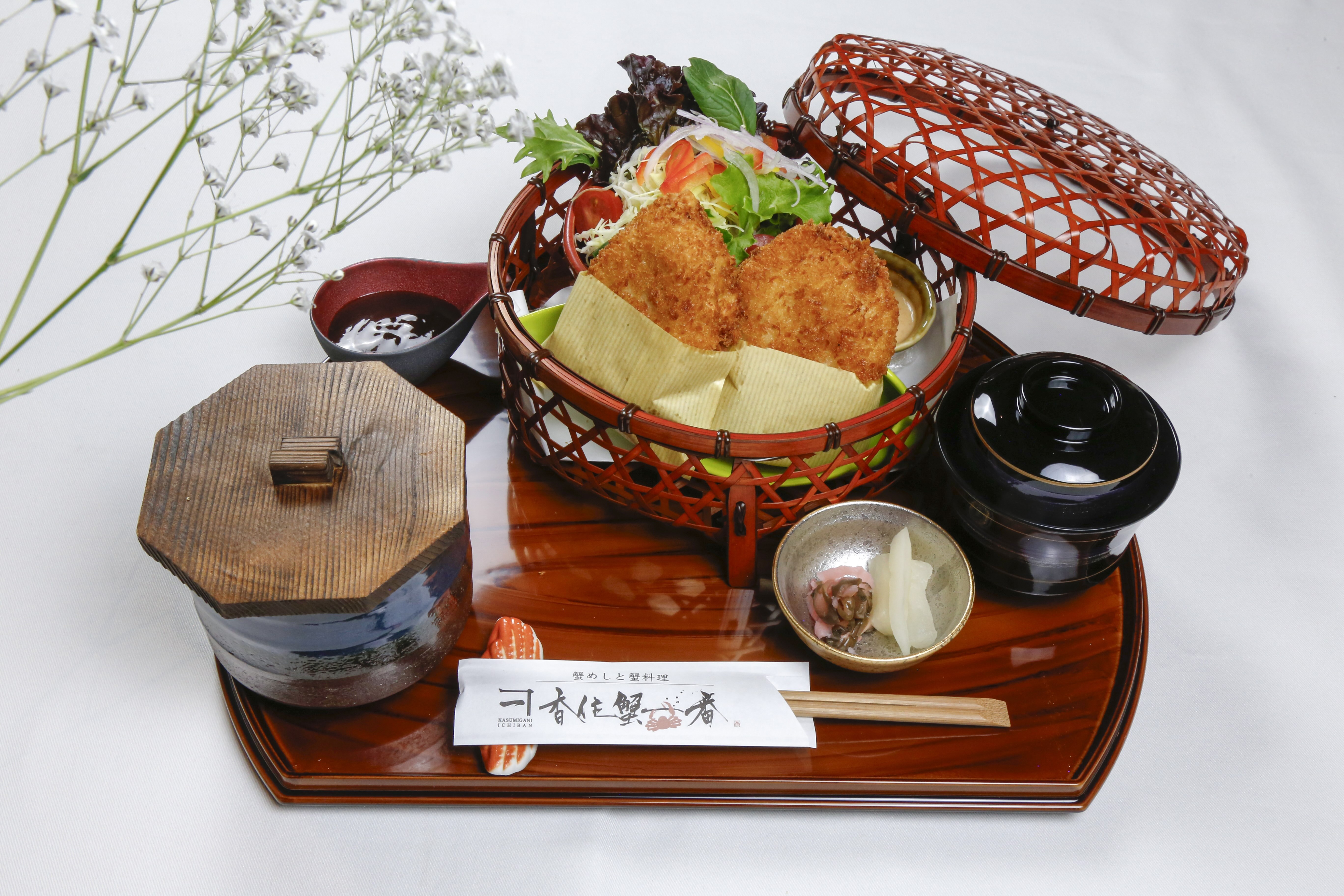「香住ガニクリームコロッケ」1,480円。自家製の熱々コロッケ定食。