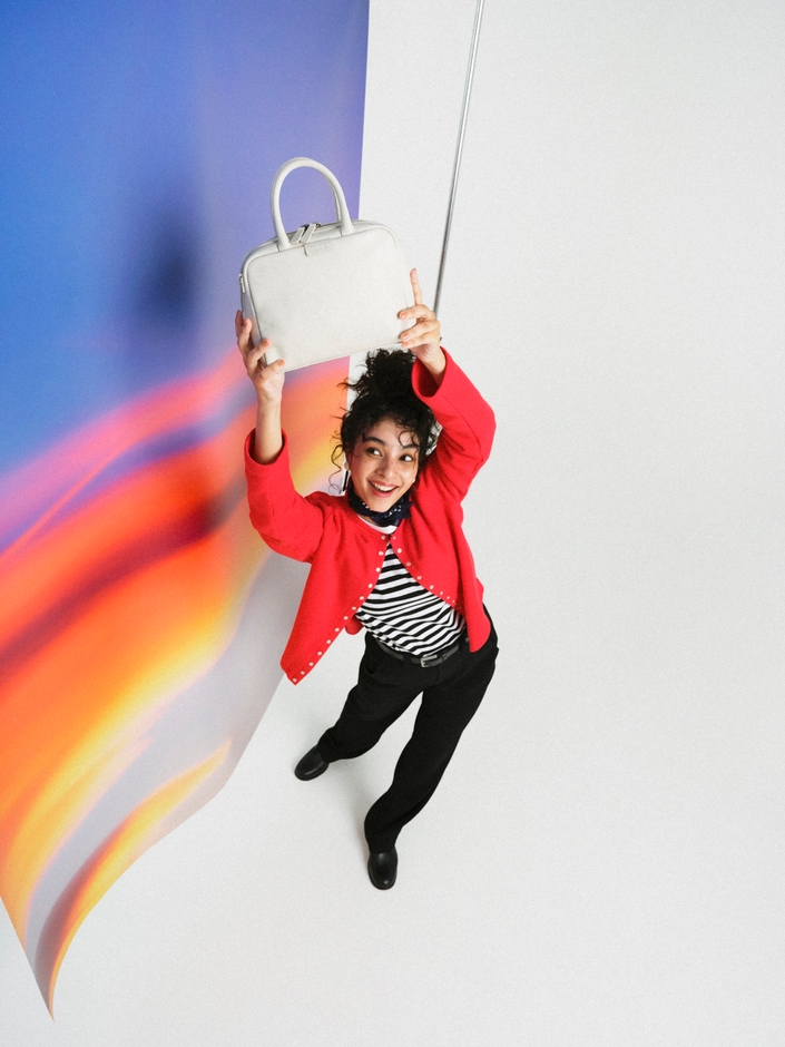シーズン立ち上がりの新作には、アニエスベーのお気に入りの横型ボストンバッグ「LA DAME」が登場しブラック、ホワイトに差し色グリーンを加えた3色で展開。シックなカラーのウェアとも合わせやすく、アニエスベーらしい色遊びをご提案します。