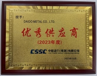 大同メタル工業、CSSC Power (Group) Co., Ltd.より 「優秀サプライヤー賞」を受賞