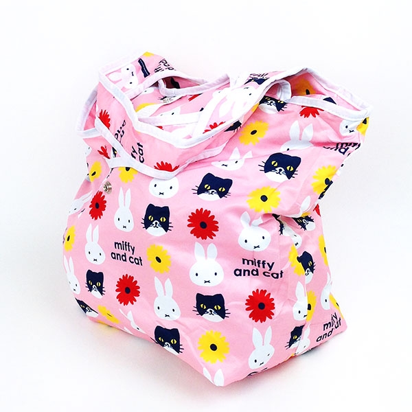 ミッフィーとネコの総柄がキュートなエコバッグは、買い物だけではなく荷物が増えたときにも便利です。使わないときは小さく畳めてカバンの中でも場所を取りません♪