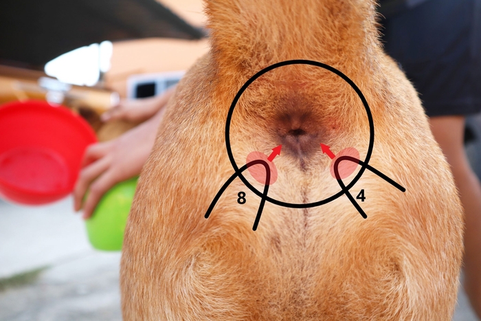 ②・③次に上下の尖っている部分をカットします。図の通り上の部分はある程度血管から距離が離れていますが、下が血管の近くにあるため慎重にカットしましょう。