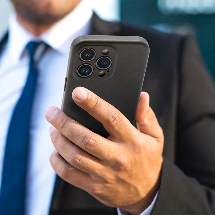 環境に配慮し、ヴィーガンレザーを使用したiPhone 15 Pro Max専用設計のバックケースです。本物の革の質感を再現した耐水性や耐久性に優れた生地で、高価なiPhone 15 Pro Maxを優しく守ります。