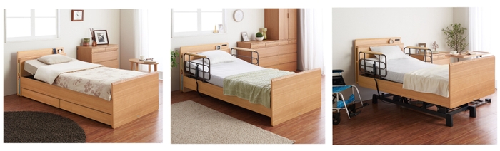お元気な時の電動リクライニングベッドが 昇降ユニットを取りつけて、在宅介護ケアベッドに コイズミファニテックより、ライフステージに合わせた 「ケアアップベッド」新登場