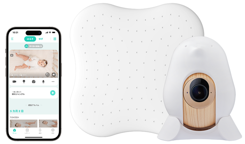 「CuboAi 赤ちゃんねんね見守りセット」は、かわいい小鳥型の本体にAI技術を詰め込んだ高機能スマートベビーモニター「CuboAi スマートベビーモニター(第3世代)」と、マットレスの下に敷くだけで赤ちゃんの連続した細かな動きを検知する「CuboAi ベビーセンサーパッド」のセット。