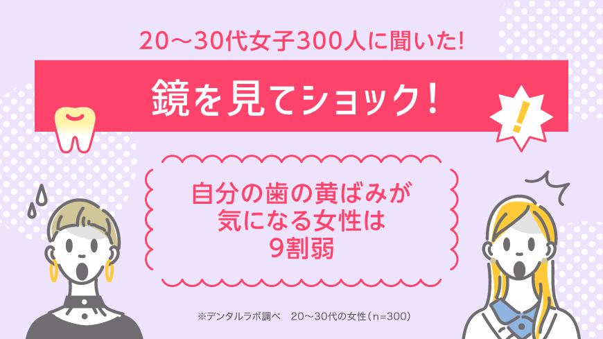 鏡を見てショック!自分の歯の黄ばみが気になる女性は9割弱