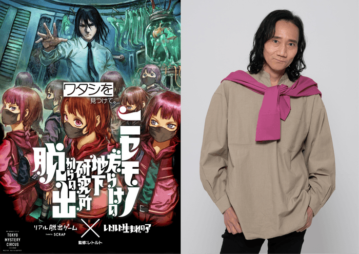 リアル脱出ゲーム×レトルト生まれの子『ニセモノだらけの地下研究所からの脱出』は、ゲーム実況者レトルトの完全監修のもと制作され、彼が原案を手掛けた楽曲「レトルト生まれの子」の世界観を、謎解きとともに体験できる唯一無二の体験型イベントです。チケットの一般販売は、9月27日(土)正午12:00より開始します。