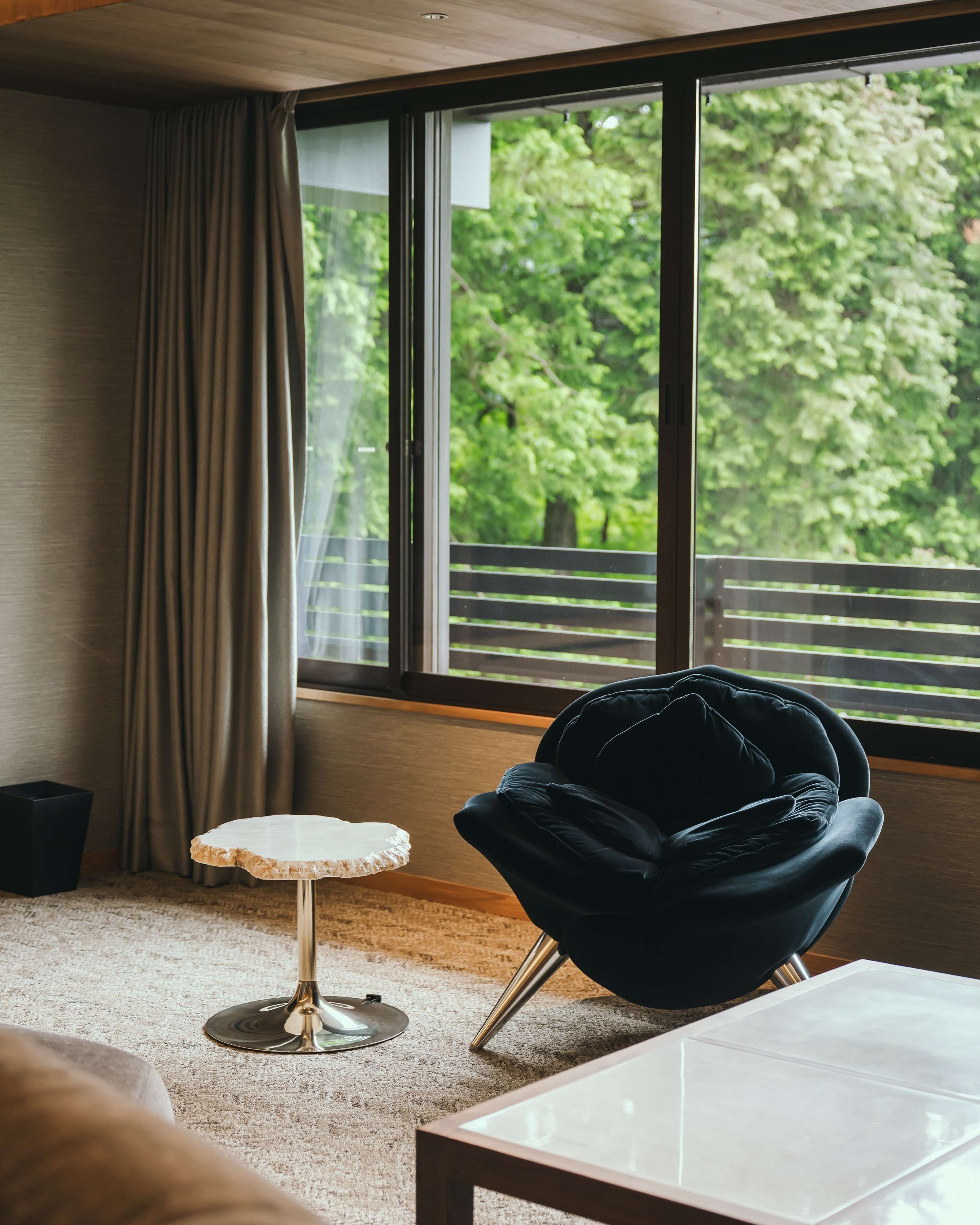 2024年にオープンしたわずか5室のスモールラグジュアリーホテル。92平米~126平米の広さのスイートで、全室にサウナ、水風呂、大浴場を完備し、ソファはEdra、Poltrona Frau など各室異なるハイブランド。ほとんどの部屋から富士山を望め、中庭にはマスコットの3匹の山羊がいるのも特徴です。