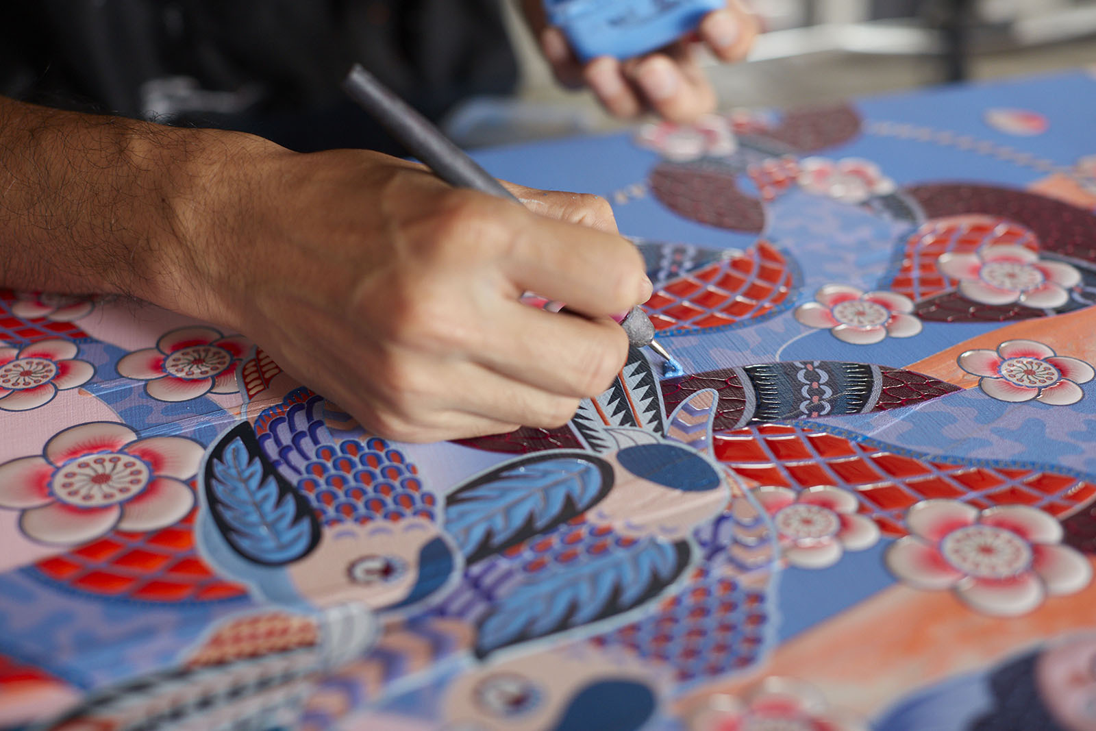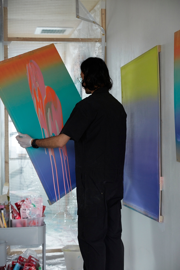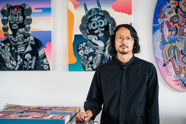 京森氏は、装飾やシンボルを通して人間の欲望や権威の構造を描き出す作品で注目を集めています。宗教美術や歴史的な装飾文化から着想を得ながら、鮮やかな色彩と緻密な構成、そして独自の素材表現を組み合わせることで、強い視覚的インパクトを持つ作品を制作しています。エルメス主催のアートアワードでの受賞をはじめ、その独創的な表現は国内外で高く評価されています。