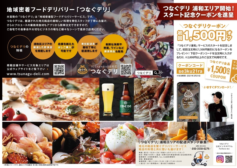 地元密着フードデリバリー『つなぐデリ浦和』スタート! 浦和の銘店と食卓を“美味しい”でつなぎます ~3/19~第一弾リリース&加盟店順次拡大中~