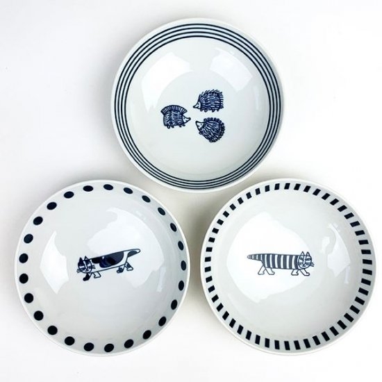 世界的な陶芸家であるリサ・ラーソンの作品のモチーフとなっている、猫のマイキーとハリネズミの3兄弟がデザインされています。