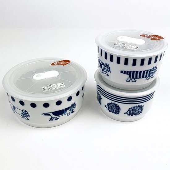 こちらは、保存容器の3点セットです。容器自体は磁器製なので、そのまま食卓に出すこともできちゃう優れもの♪