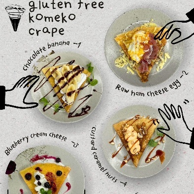 北海道蘭越米を使ったグルテンフリーの米粉クレープ。