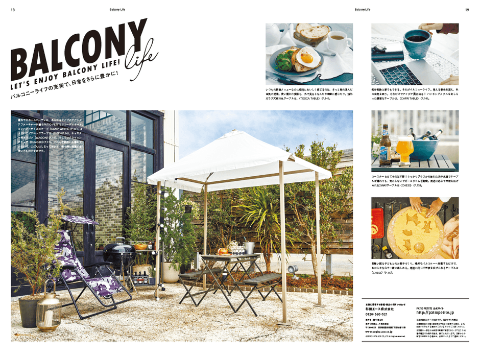 杉田エース株式会社は、アウトドアファニチャーブランド「PATIO PETITE(パティオ・プティ)」の2019年カタログ「BALCONY LIFE vol.3」を発刊いたしました。