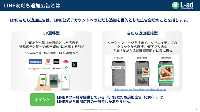 LINE友だち追加広告とは、企業のLINE公式アカウントへの友だち追加を目的とした広告全般のことを指します。