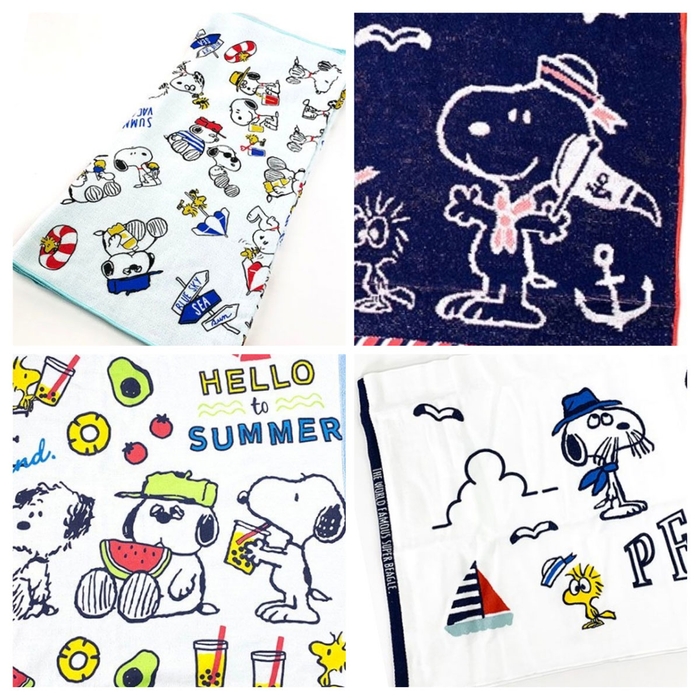 スヌーピーの夏らしいデザインが人気のバスタオルの紹介でした。これからの時期にピッタリなデザインで、肌ざわりも抜群です。新しいバスタオルにチェンジしてみませんか?