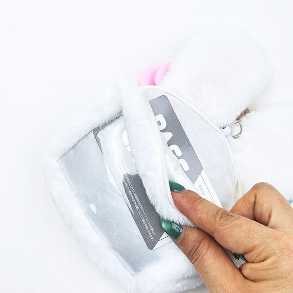 鍵など付けてリールが伸びて便利です。ふわふわ、もこもこで手触りが超癒し系です。サイズ:14cm×5.5cm×4cm 素材:ポリエステル、ナイロン