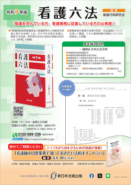 看護を学んでいる方、看護業務に従事している方の必携書!『看護六法 令和7年版』3/7に新刊発売!