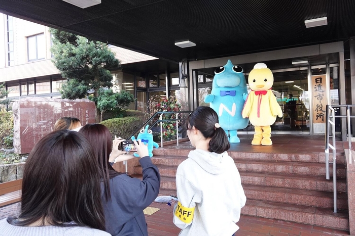 そして、2025年1月に日進市役所で撮影を実施。監督、カメラ、出演者、裏方など、各々が役割を持って臨みました。現場での試行錯誤もあったようです。「画角やピントの合わせ方を考えて撮影した」とカメラ役の中田さん。「キャラクターの動きの大きさ、しゃべり方を工夫した」という森さん、伊藤さん、三並さん。「キャラクターを支えたり、小道具を用意したり」と進行をサポートした吉村さん。見やすく、伝わりやすい動画にするためにあれこれ模索しました。綿密な準備のおかげもあって撮影はスムーズに終了。約1ヶ月半かけて編集され、動画が完成しました。