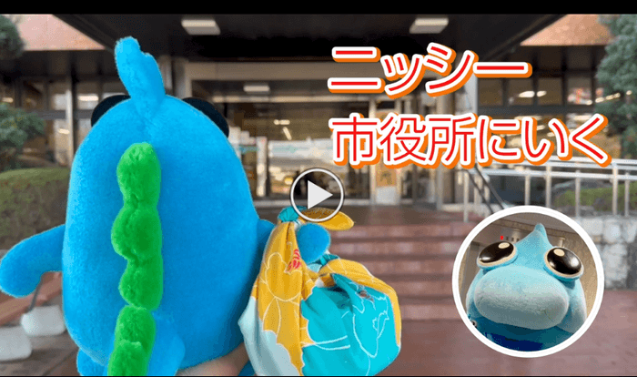 愛知県日進市のマスコットキャラクター“ニッシー”が、お父さんを探して市役所をあっちへこっちへ。市民課、環境課、農政課など、いくつもの課を訪ね、職員さんから出される謎を解きながら進んでいきます。ニッシーと一緒に謎解きを楽しみながら、各課の役割について学べる。この動画の企画、撮影、編集を名城大学の学生が行いました。