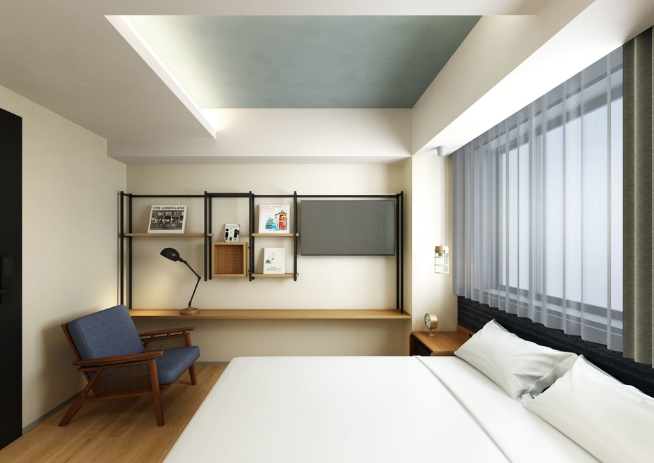 場所は、福岡市の中心である天神地区から程近く、福岡市地下鉄空港線「天神駅」から徒歩8分、周囲にはショップやカフェが建ち並ぶ、利便性に優れたエリアに位置します。読書をお楽しみいただけるようこだわった客室のインテリアは、ベイクルーズグループが展開する「ジャーナル スタンダード ファニチャー」「アクメ ファニチャー」の協力を得て、ヴィンテージ感のあるカジュアルなデザインとなっています。