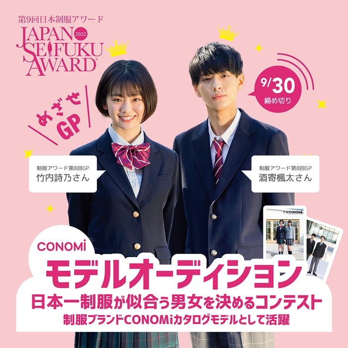 制服ブランドCONOMi(株式会社このみ)は、日本一制服が似合う男女を決めるコンテスト『第9回日本制服アワード』の応募締切が迫っていることをお知らせいたします。