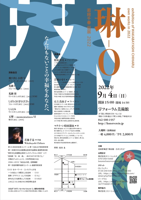日本音楽コンクール第1位受賞の作曲家 若林千春 その楽曲を集めた9年ぶりの演奏会 『琳-0 若林千春 個展 2022』開催決定 カンフェティでチケット発売
