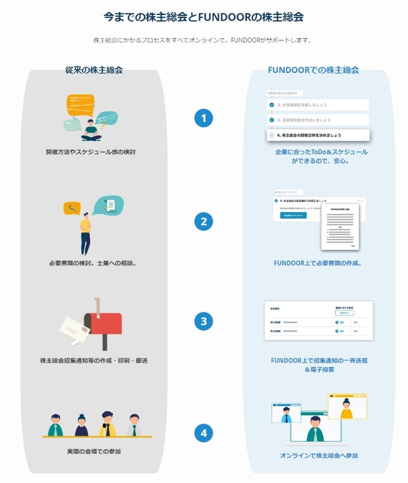 ✔ 株主総会をFUNDOOR でワンストップ開催︕