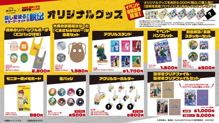 全世界で累計1,490万人以上を動員しているリアル脱出ゲームを企画制作する株式会社SCRAP(本社:東京都渋谷区、代表:加藤隆生)は、TVアニメ『SAKAMOTO DAYS』とコラボした新作リアル脱出ゲーム『殺し屋迫るキラーマーケット』のオリジナルグッズを発表します。