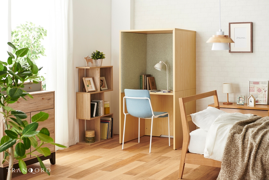また吸音材を使い音を和らげるので、完全な個室とは違った半個室スペースとなり、家族や周りとのちょどいい距離感・パーソナルスペースを生み出します。表面はフェルト繊維になっているため、ピンでメモなどを掲示しても穴が目立ちません。