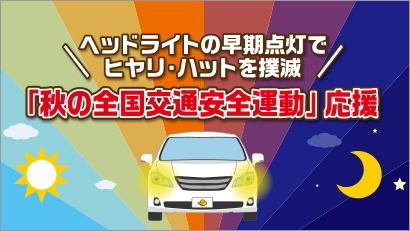 「夕暮れ時と夜間の事故防止」として、ヘッドライトの早期点灯を啓発するヒヤリ・ハット撲滅「ライトオン!」キャンペーンを実施しました。