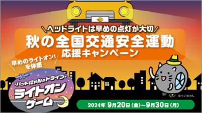 2024年の内閣府推進「秋の全国交通安全運動」の重点項目のひとつに掲げられている「ヘッドライトの早期点灯」に協力するため、ヘッドライトの早めの点灯を体感できるゲームを作り、「秋の全国交通安全運動」を応援しました。