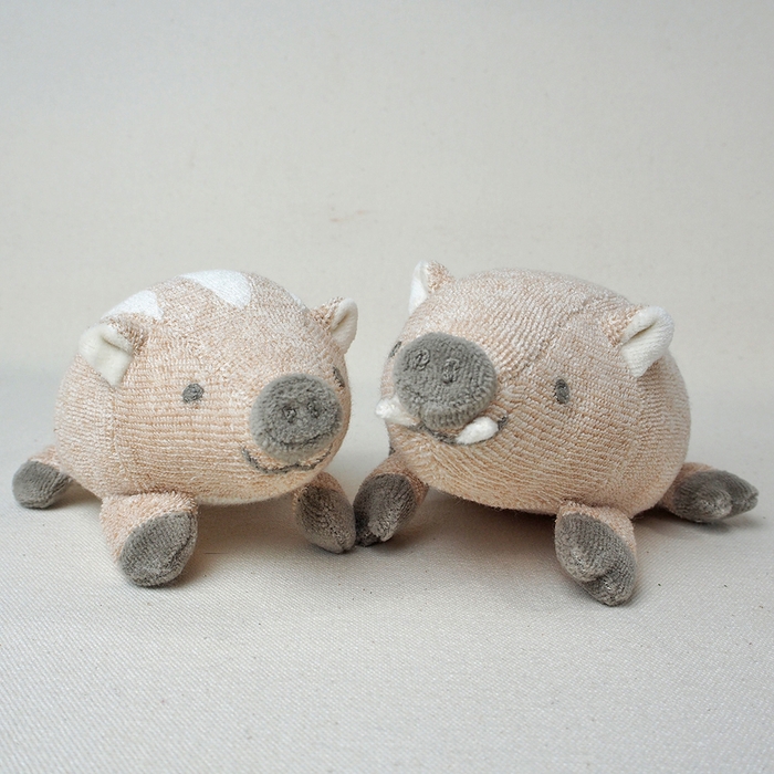 この度発売のイノシシのぬいぐるみは、肌触りが心地よいパイル生地で一つ一つ丁寧に作り上げたぬいぐるみです。
