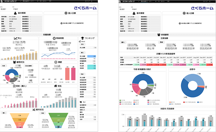 “くらし”に関わるサービスをワンストップで提供するさくらホームグループは、不動産仲介件数、新築着工件数では石川県トップクラスに位置しています。同社では、生産性向上を目指して、社員一人ひとりがデータをもとに現状を把握し、主体的に動くための組織づくりを行っています。その取り組みの一つとして、グループウェアに蓄積されたデータの活用がありました。しかし、現在利用しているグループウェアでは、複数のアプリケーションからのデータが見づらく、手動でレポートを作成する必要があり、時間と手間がかかっていました。