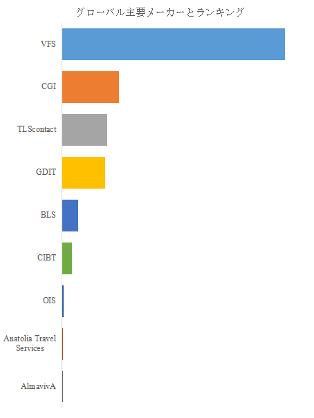 LP Informationのトップ企業研究センターによると、ビザアウトソーシングサービスの世界的な主要製造業者には、VFS、CGI、TLScontactなどが含まれている。2024年、世界のトップ3企業は売上の観点から約79.0%の市場シェアを持っていた。