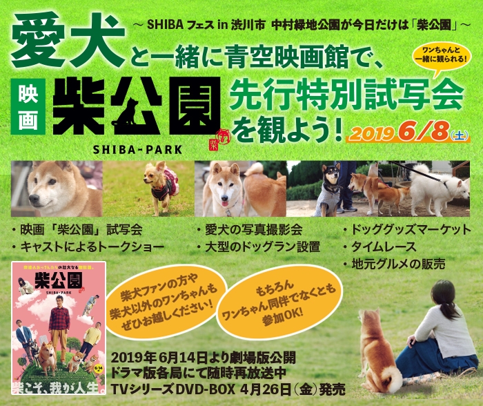 愛犬と一緒に青空映画館!SHIBA フェス in 渋川市 映画版「柴公園」特別先行試写会を6/8開催!